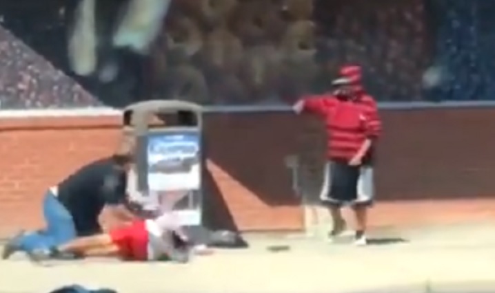 In a video posted to social media, the employee can be seen struggling on the ground with the man while the woman smashes the pop bottle and uses the broken end as a weapon, police said.