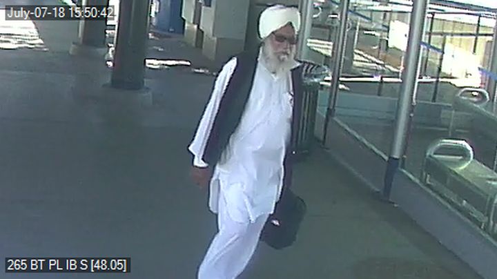 “He was wearing a white turban, sunglasses or glasses, white shirt and pants, a black vest, dark dress shoes, a gold watch with a brown strap, and was carrying a black shoulder bag,” police said.
