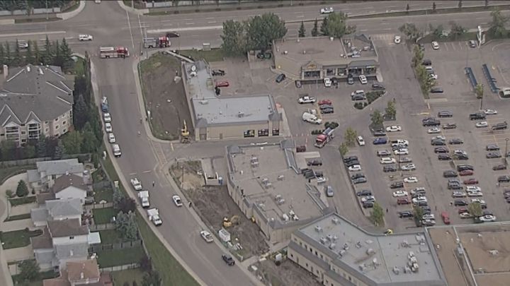 A spokesperson for Edmonton Fire Rescue Services said crews were called to Falconer Heights just before 4:30 p.m. A construction crew was working behind the mall when it’s believed they struck a gas line.