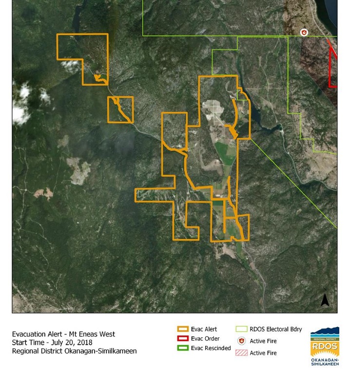 The Regional District of Okanagan-Similkameen has issued an evacuation alert for 49 properties in the Meadow Valley area.