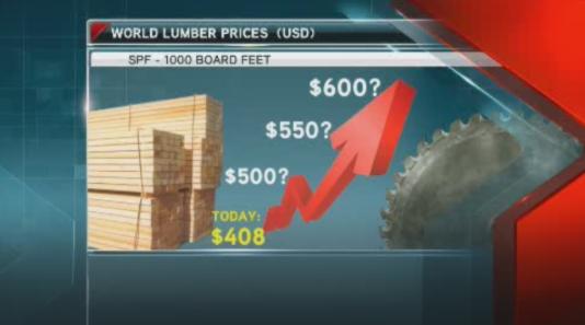 The average price of lumber, measured in a thousand board feet, is now over $400 U.S. And the experts say it could go to 600 dollars, which is a third higher than it’s ever been.