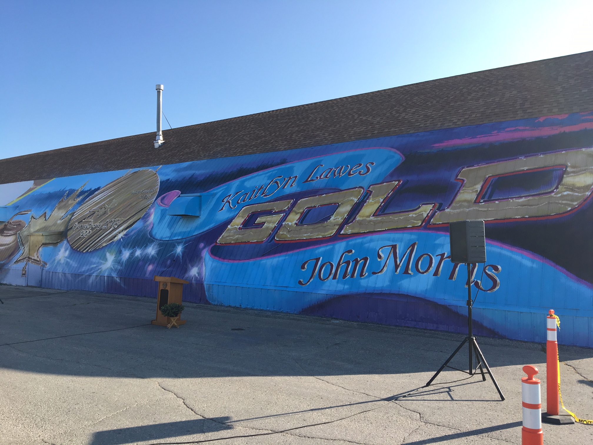 The mural, which covers the entire west side of the building, honours Winnipegger Kaitlyn Lawes, who earned an Olympic gold medal at the 2018 Winter Olympics with partner John Morris in mixed doubles curling.