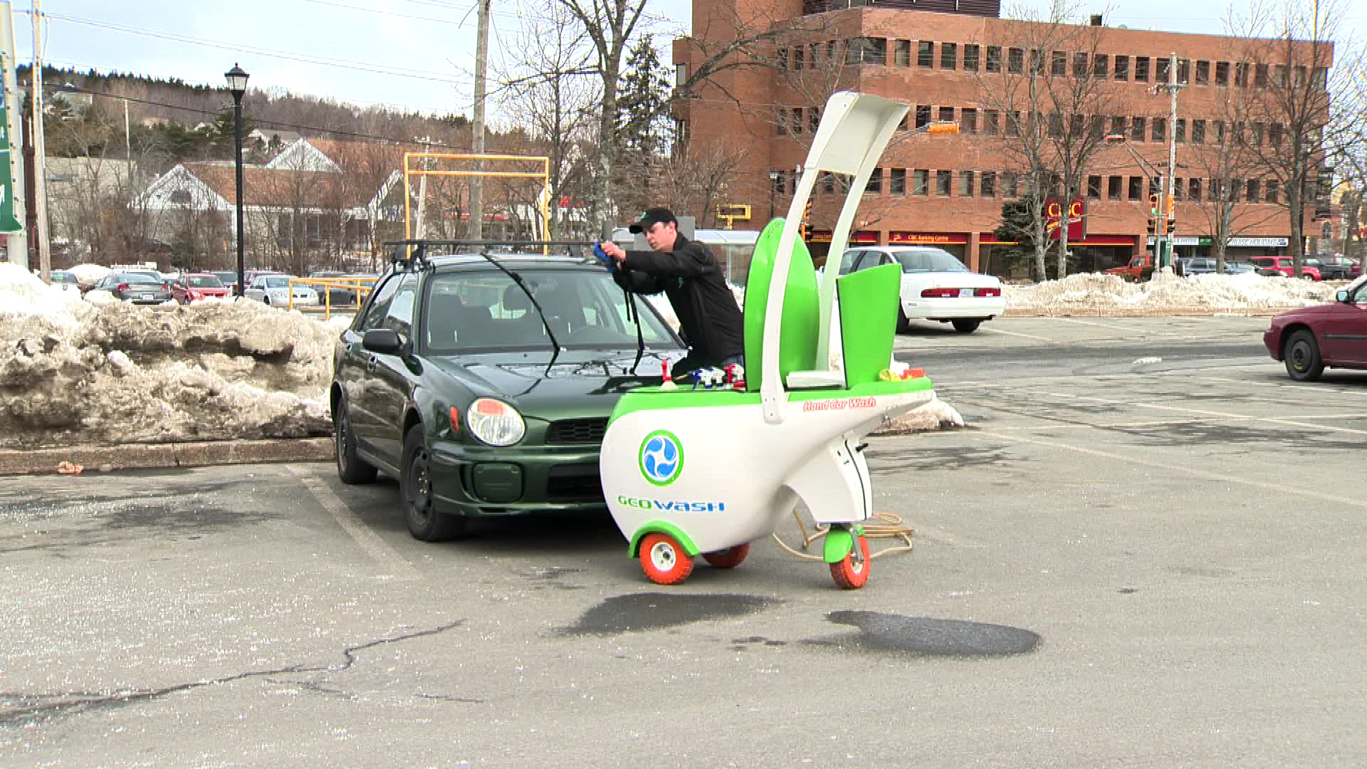 There are a handful of full time employees in Nova Scotia right now, but Hunter says he hopes that number will increase as the weather warms up and demand for the service goes up. The process starts with the application of a waterless solution that takes all the dirt off the car, allowing Geo Wash to use very little water.