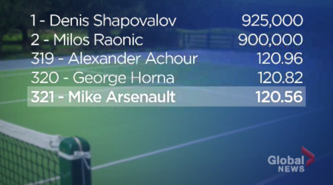 Making it to the round of 16 got me 45.36 points, bringing my total to 120.56, good for 321st in the country. The updated leaderboard has Denis Shapovalov a mere 924,879 points ahead of me.