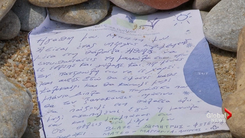 A letter addressed to a six-month-old boy was found on a beach in Mati, Greece Saturday, not far from where he was found dead days ago.