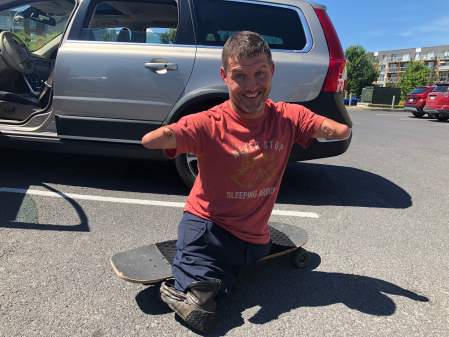 The 39-year-old motivational speaker, born without arms and legs, was then two weeks into his cross-country hitchhiking trip.