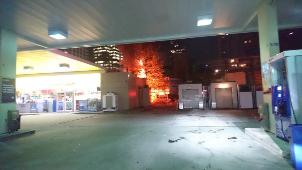 In the video, flames can be seen rising from behind the station’s convenience store above the top of the roof. Pan told Global News she also saw black smoke in the sky, prompting her to alert the attendant, who then called the fire department.