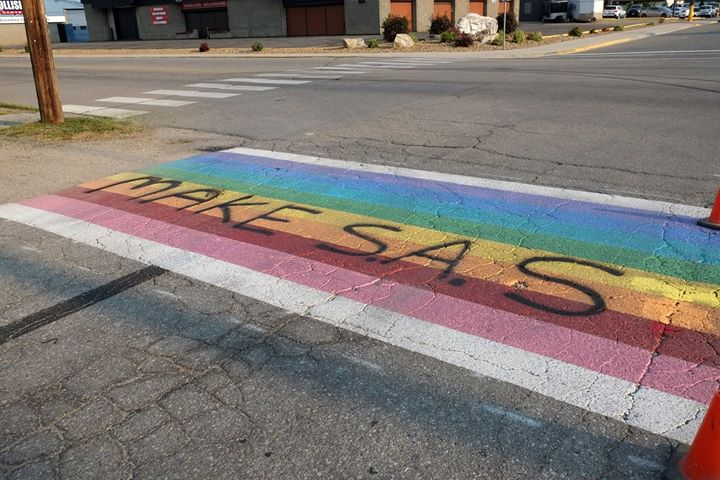Salmon Arm’s new rainbow crosswalk, a symbol of inclusion for the community’s LGBTQ+ community, was vandalized again Sunday night.
