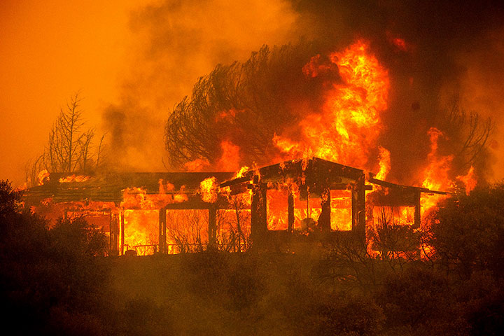 The two fires straddling Mendocino and Lake counties had burned 10 homes along 116 square miles (300 square kilometres) of rural land. Fire crews were able to slow the spread of one of the blazes into populated areas and instead the fire pushed into the Mendocino National Forest.