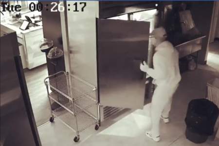 In an infrared video posted to Facebook, a man dressed all in black, a dark-coloured cap and black sneakers can be seen rummaging through the store’s kitchen, opening the fridge and drawers presumably looking for something.