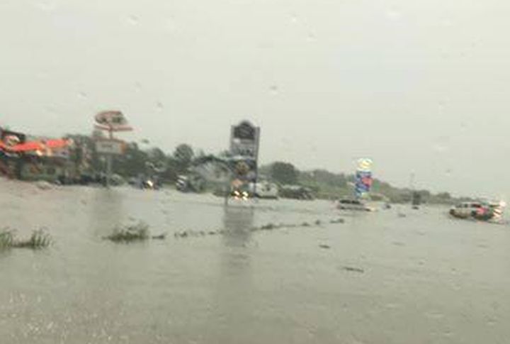 Photos taken by people in the area showed vehicles partially submerged under water.