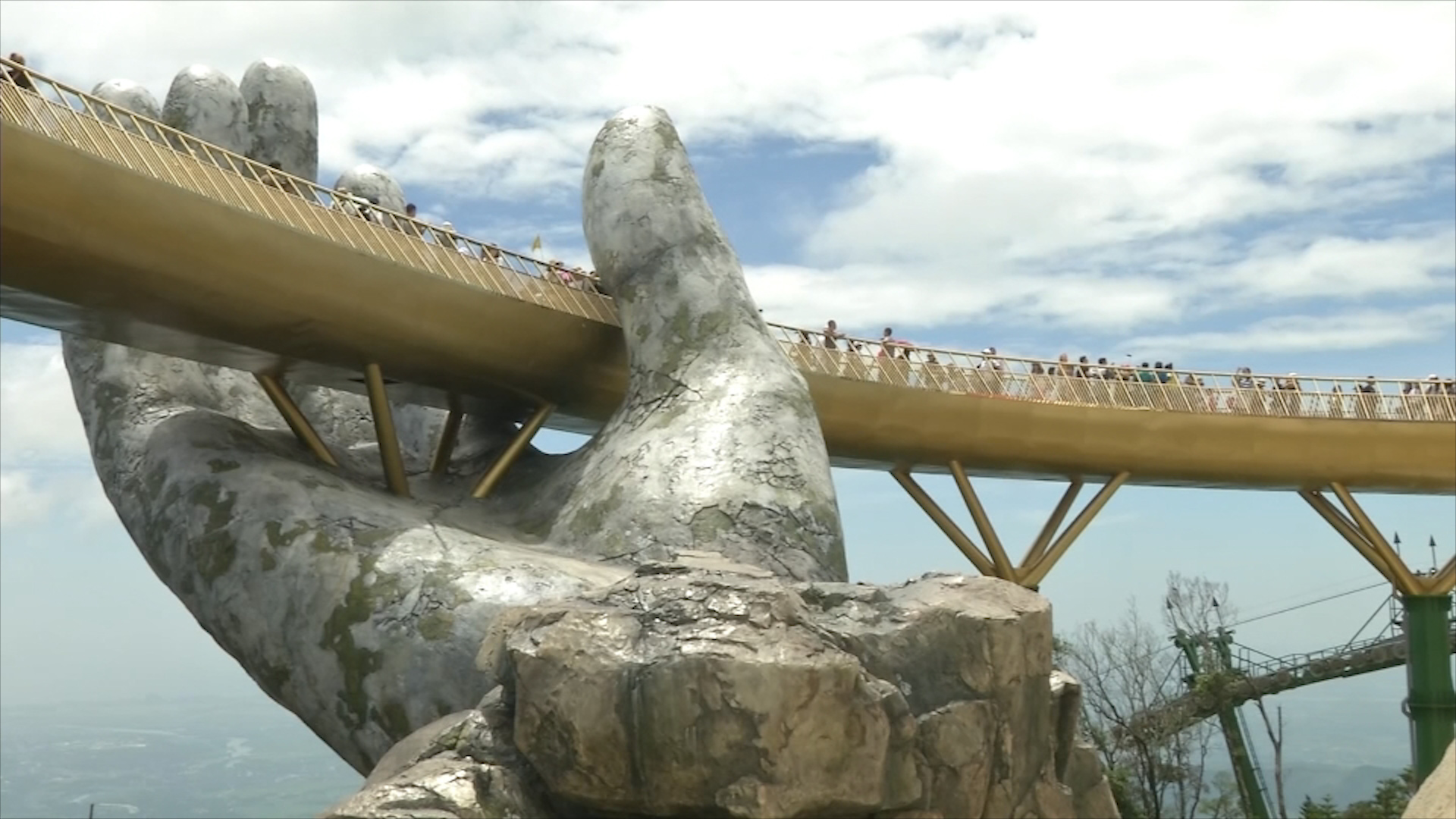 Cau Vang or the “Golden Bridge” in Vietnam’s Ba Na Hills has attracted scores of tourists since it opened in June, eager to see a novel piece of architecture famed for its unusual design.
