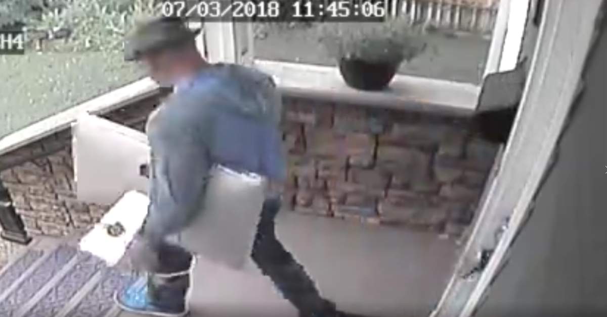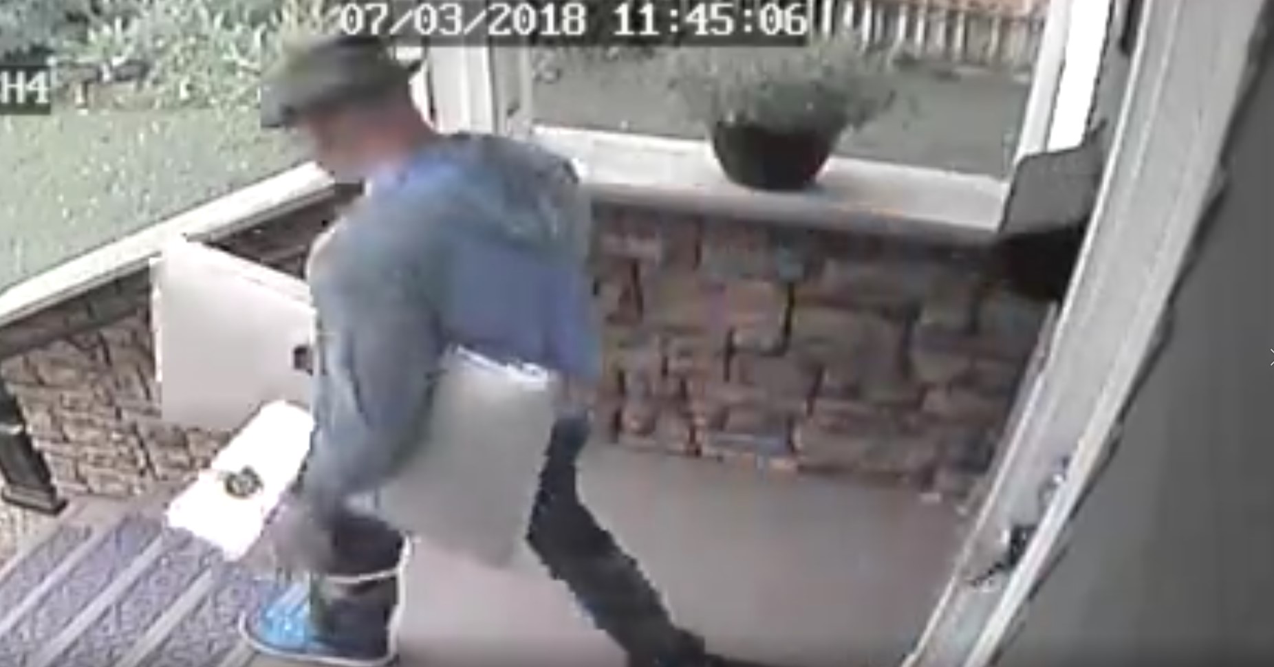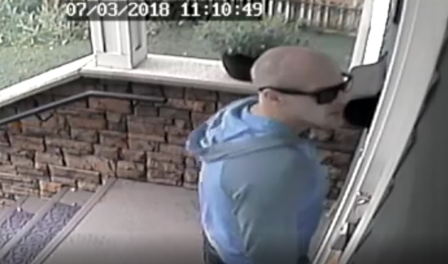 He checked his surveillance video to find a man in sunglasses and a blue hoodie arriving just after 11 a.m., hours after an Amazon package had been delivered to his doorstep.