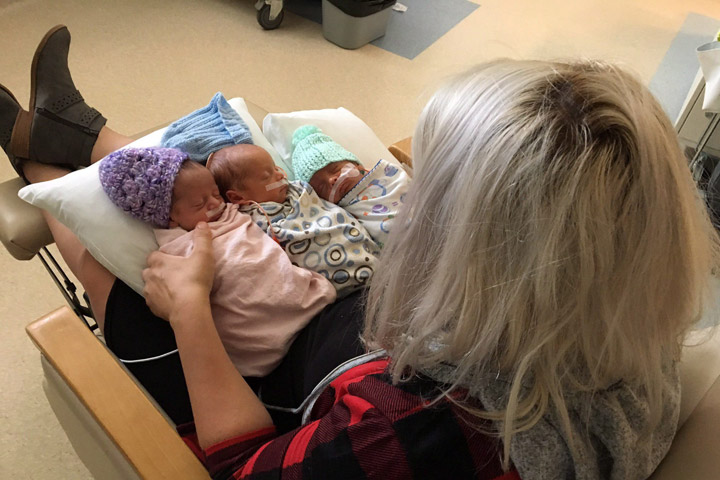Danielle Johnston said her triplets, Karlee, Liam and Jack, are all in the neonatal intensive care unit at a Regina hospital and will stay there for another two weeks.