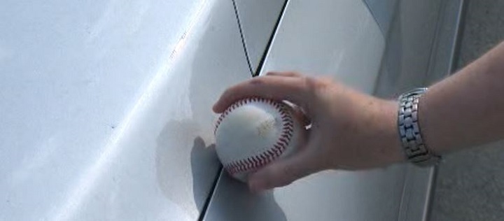 “I was driving down Recreation Avenue on Sunday and out of nowhere a baseball struck my car. So I pulled over, there were kids cheering, of course, because the ball hit the car,” Deirdre Rowland told Global Okanagan.