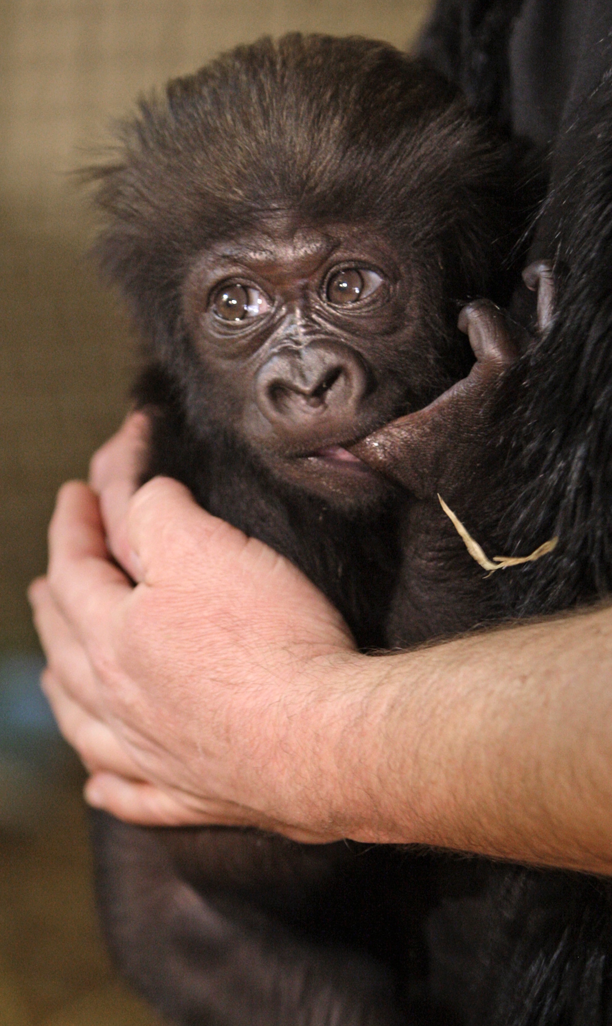 Cincinnati Zoo & Botanical Garden primate specialists say “Gladys” is in good health and is developing and growing quickly with loving care from 10 humans imitating a gorilla mom’s behaviour.