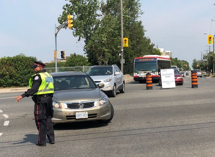 As hundreds of families chose to head to the beach to close out the long weekend, many had to contend with fighting through traffic to access Bluffer’s Park and Beach in Scarborough.