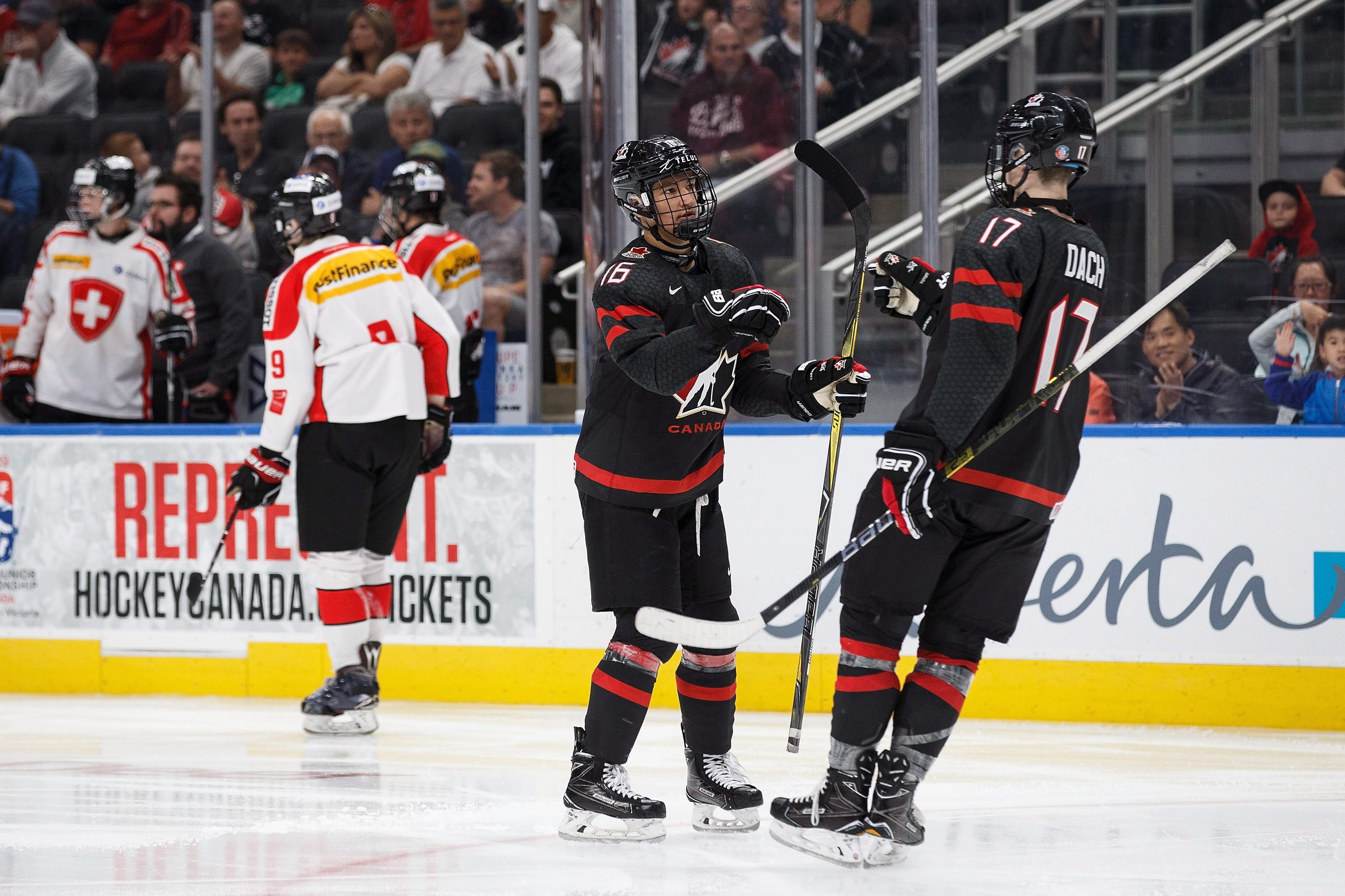 Playing on Canadian ice for the first time since 1996 in what’s now called the Hlinka Gretzky Cup, Team Canada made it a memorable and lopsided homecoming at Rogers Place on Monday, opening with a 10-0 win over Team Switzerland.