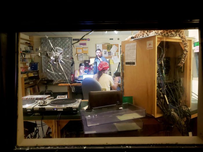 The listener-sponsored station, which broadcasts a variety of music, was off the air following the shooting but returned to broadcasting about six hours later.