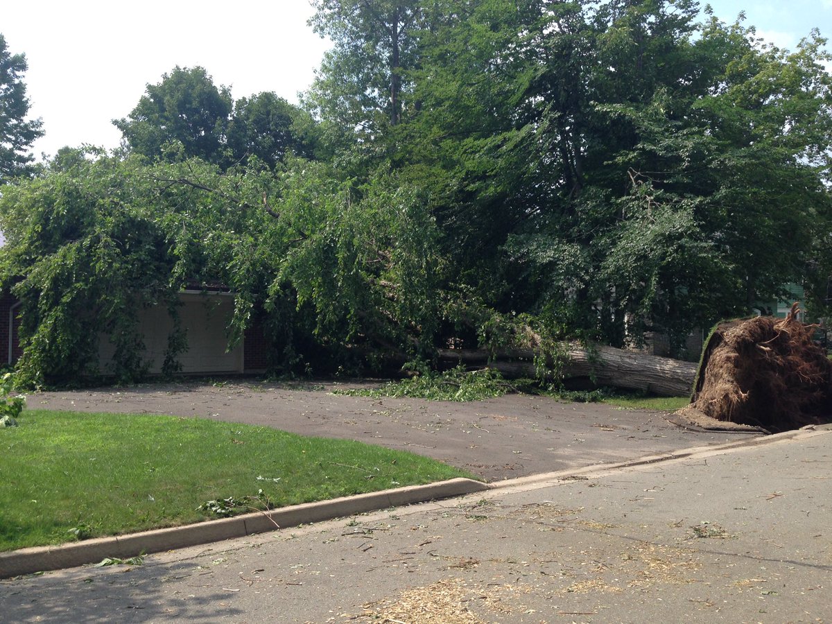 In one case, a large tree had toppled onto a home on Grey Street. Neighbours tell Global News the homeowners are out of town.