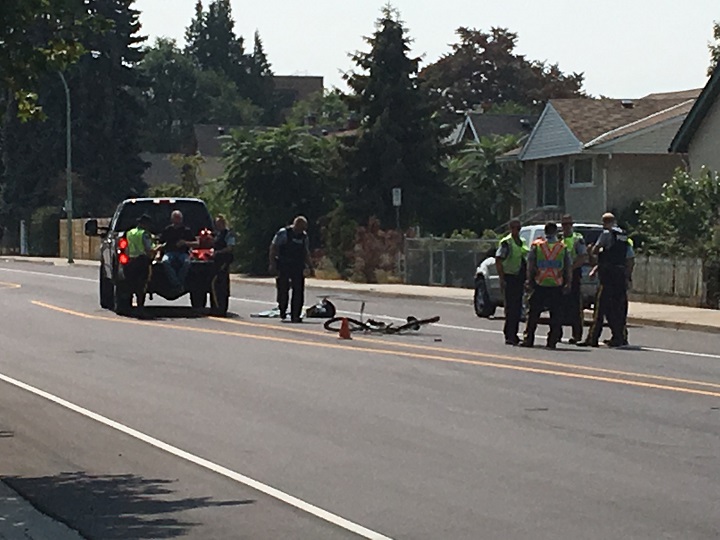 A man has been injured in a collision involving a bicycle and a pick-up truck in Kelowna.