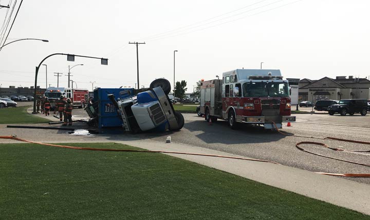 An overturned vehicle is blocking northbound traffic in the 2100-block of Millar Avenue in Saskatoon.