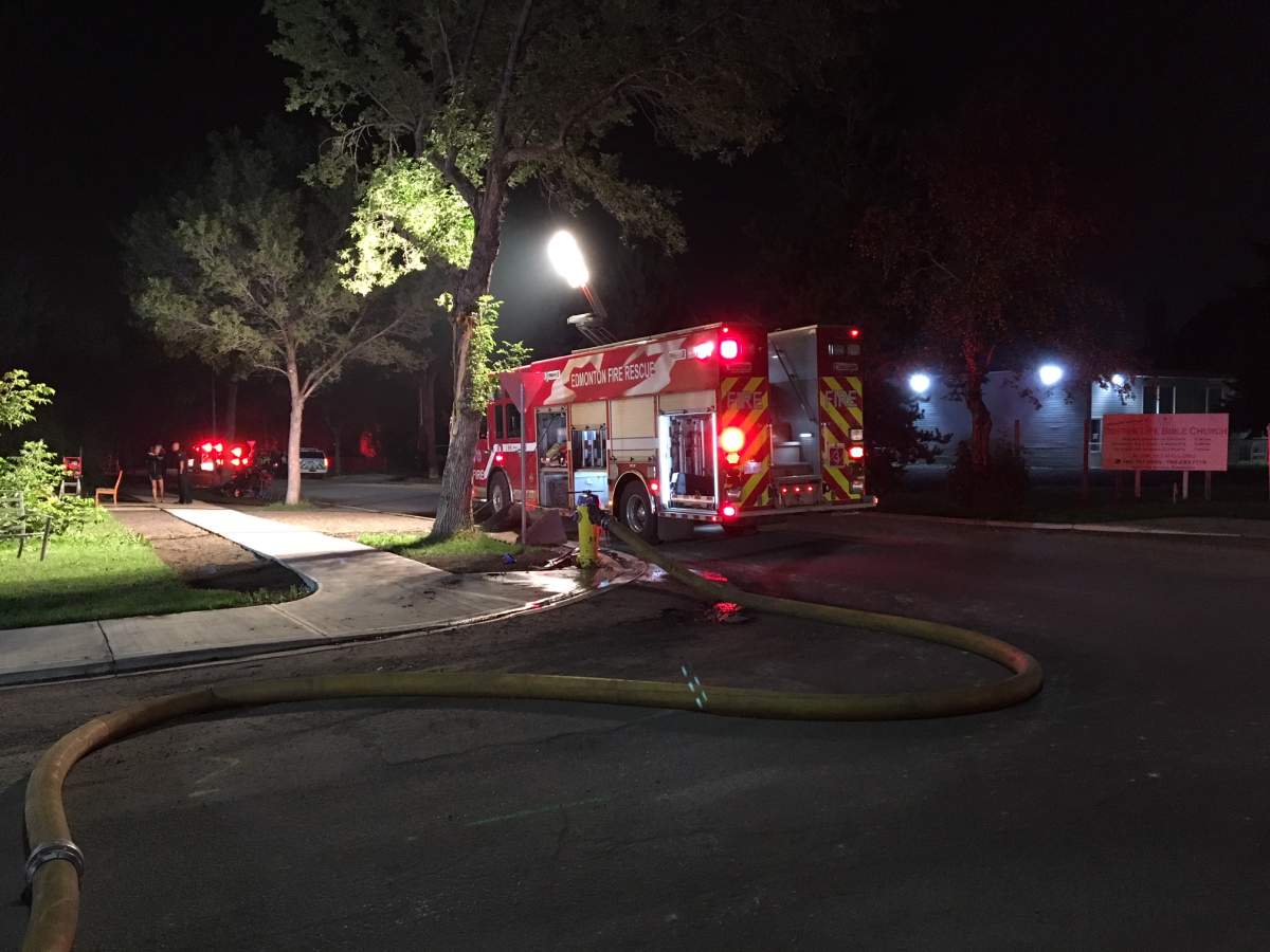The fire broke out in the basement of one of the suites in the fourplex. Edmonton Fire Rescue Services district chief Howard Samycia said no one was inside the suite at the time, but the other three suites had to be evacuated.