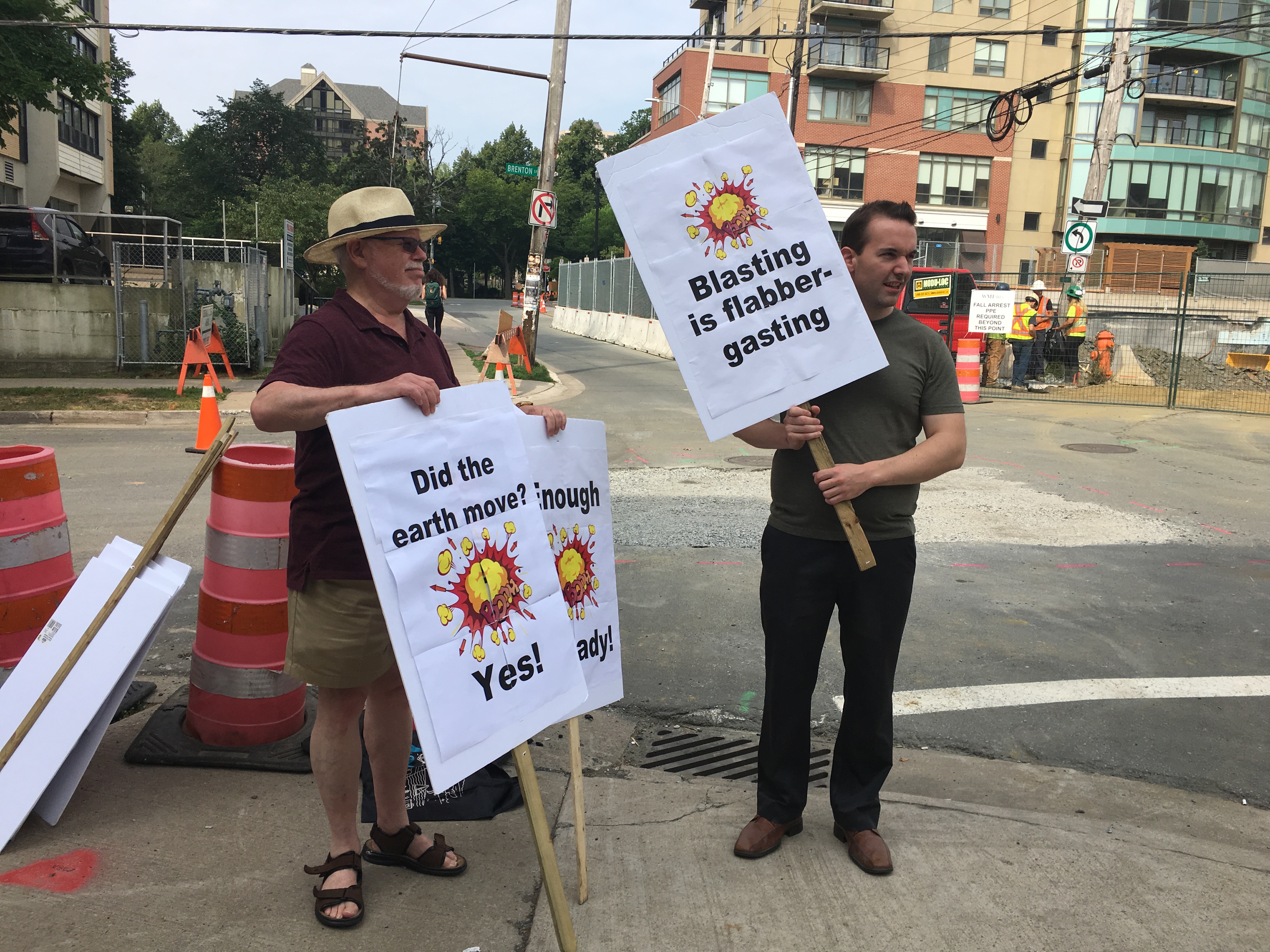 Residents in the Schmidtville neighbourhood of Halifax held a protest Wednesday against the blasting taking place at the new Brenton Place development.