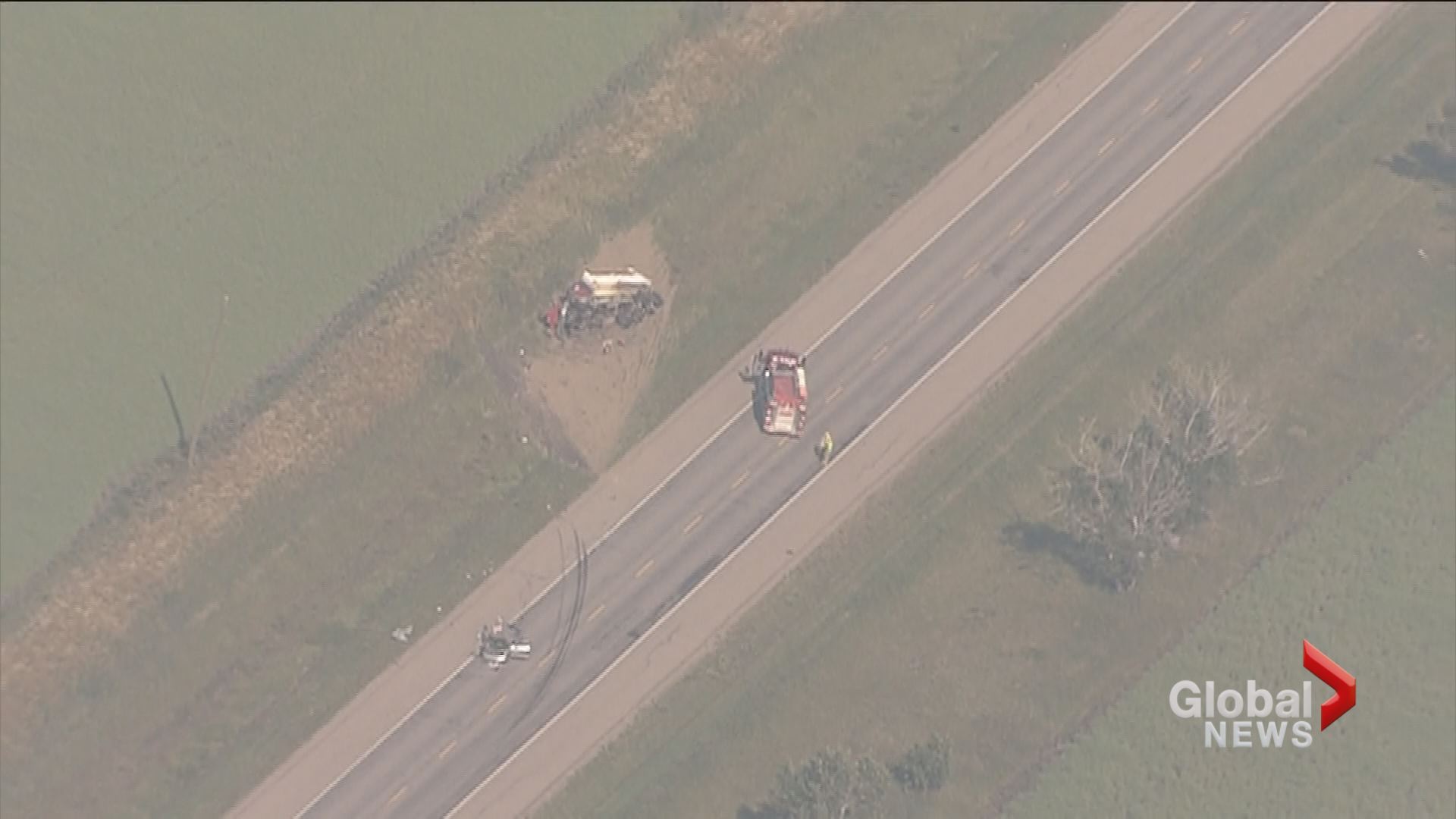 Watch below: Footage from Global1 one shows a crash near Beiseker.