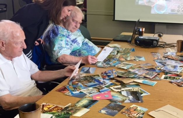 The program is interactive. Not only do residents share intriguing facts from each postcard, they’re able to take a virtual tour of different places in the world — sparking interesting conversations within the group.