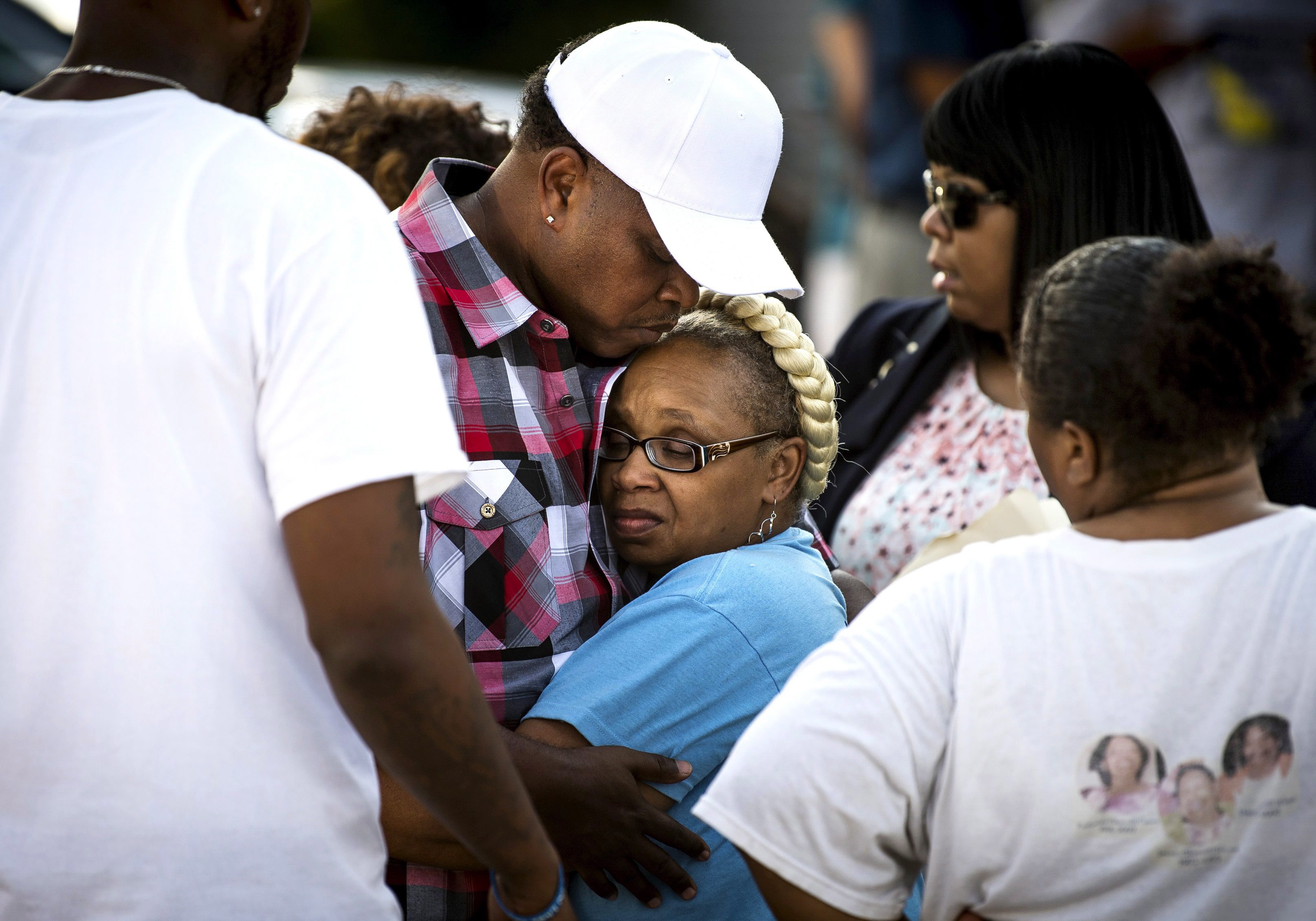 Vickie Hambrick, mother of Daniel Hambrick, is comforted by her brother Sam Hambrick Jr. after a press conference addressing a video released on the death of her son, Wednesday, Aug. 8, 2018, at the NAACP Nashville Branch in Nashville, Tenn.
