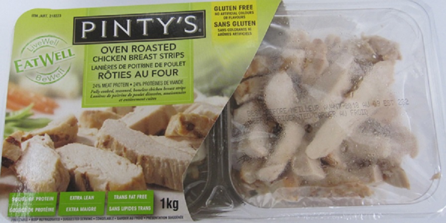 Pinty’s Delicious Foods Inc.’s Oven Roasted Chicken Breast Strips have been recalled from B.C., Alberta, Saskatchewan and Manitoba following tests by the Canadian Food Inspection Agency.