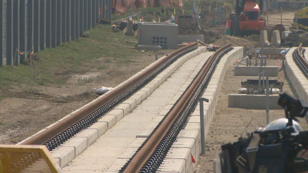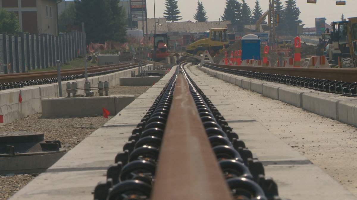 The first section of rail for the line was installed in Mill Woods on 66 Street just south of 34 Avenue.