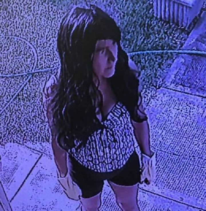Video surveillance shows Forner standing in the entrance way of a home, wearing gloves. A discussion eventually ensues with the resident and Forner is seen trying to enter the home before the resident pushes her away.