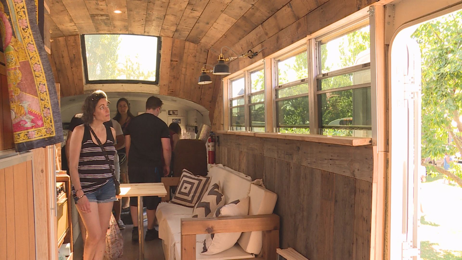 In addition to exploring Skoolie buses, festival goers also squeezed into the Tiny home, a 176-square-foot mobile unit built by Dominic Frappier.