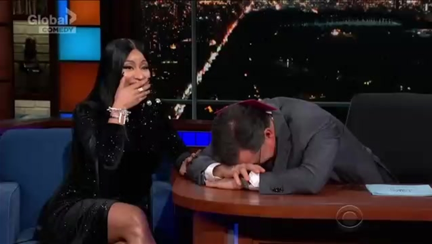 After a few moments, Minaj said,”I wasn’t done, Stephen!” and offered a second part to her freestyle.