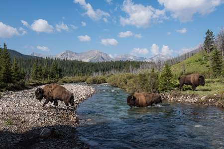 The bulls, along with 31 other wild plains bison now in the Banff backcountry, are being monitored both electronically and by staff on the ground.