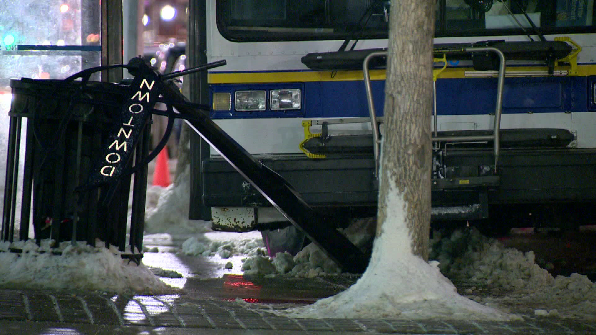 On February 15 a city bus ran into a pole on the sidewalk of 11th Avenue near Hamilton St.