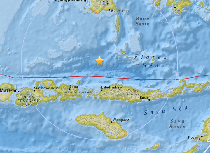 JAKARTA, Indonesia – A strong earthquake located far below the Earth’s surface shook an area in Indonesia’s Flores Sea late Friday. There were no immediate reports of damage or tsunami warnings.