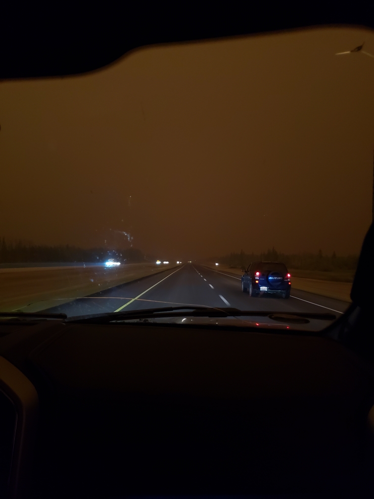 Smoke from the wildfires in B.C. are wafting across the Rockies and covering communities in northern Alberta, making it look like night instead of day.