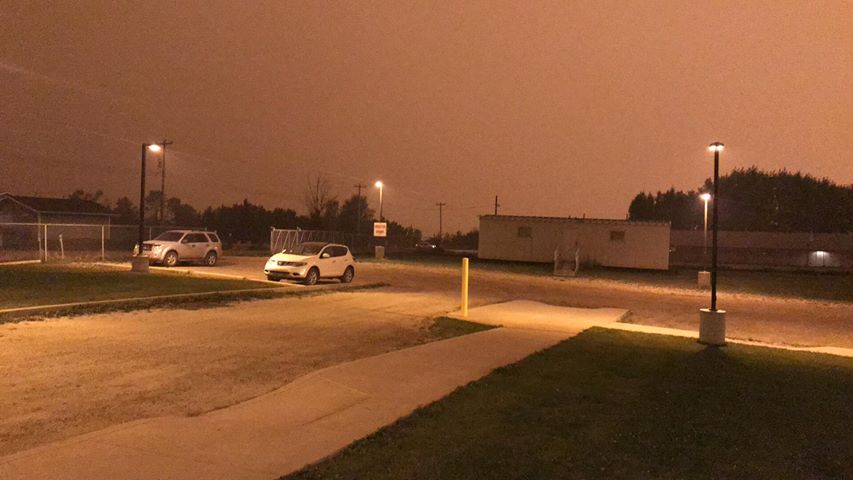 Photos show an orange haze looming over one jobsite in Grande Prairie on Friday at around 12 p.m. and dark, smoky skies in Valleyview, which is approximately 110 kilometres east of Grande Prairie.