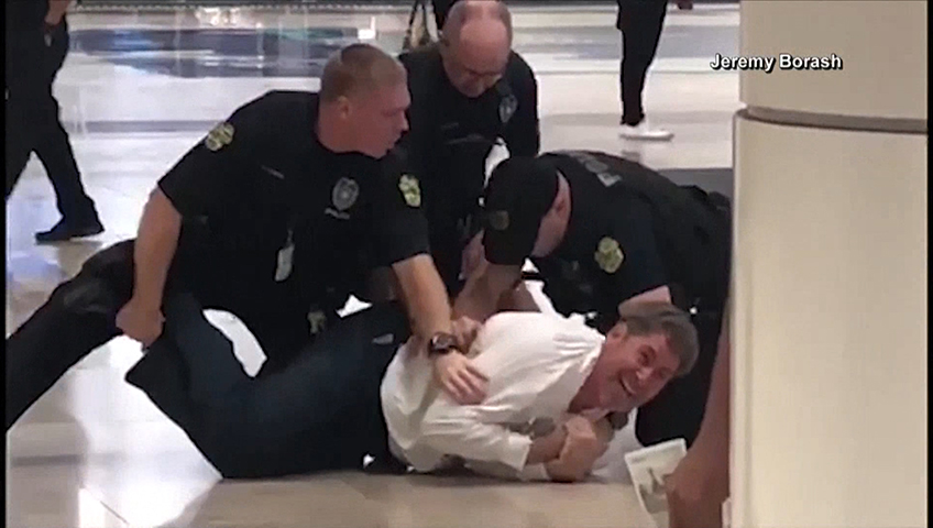 Police say he continued yelling and refused orders to leave the airport. After he resisted being handcuffed, he was taken down and pepper-sprayed. He said he “created a very big disturbance on purpose.”