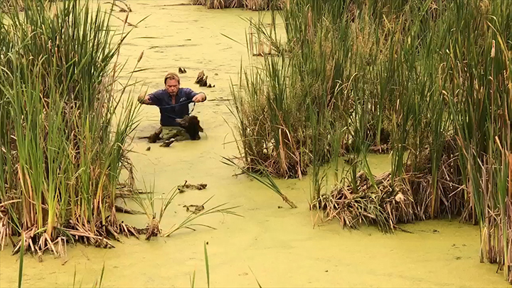 Rehwald said a volunteer helper saw Flurry running along the side of a fairway, heading south. Eventually, the dog was found in a bullrush swamp, up to her neck in muddy water.