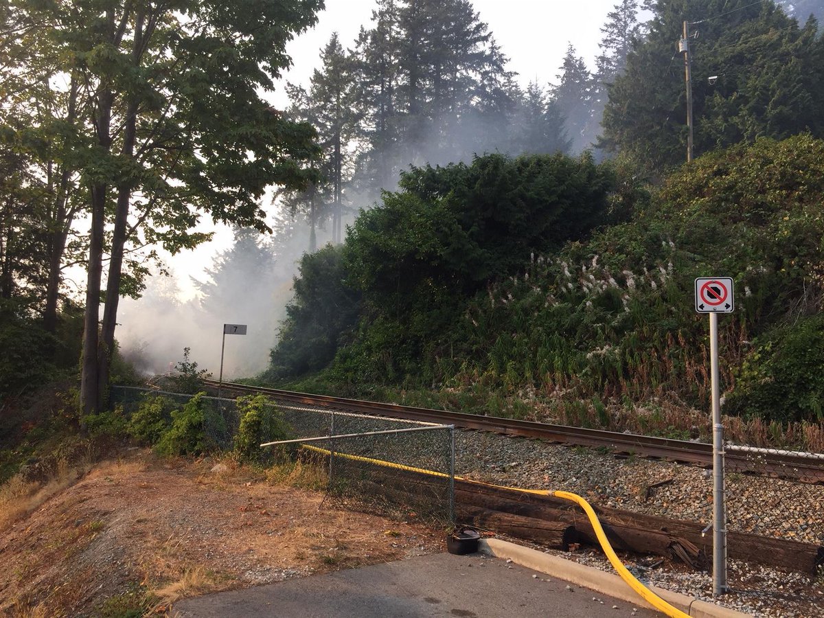 The West Vancouver Fire Department says they are responding to a large brush fire near the train tracks in the 3300 block of Marine Drive.