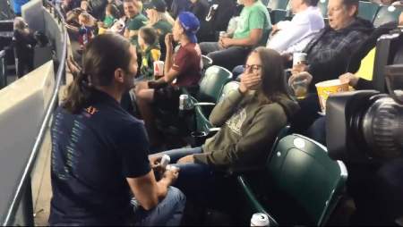 “I didn’t really know what was happening at first. I wasn’t really paying attention. I kind of wondered why the cameras were there and then didn’t really pay to much attention. And then when I saw him on his knee, I kind of clued in and then I was in shock for a little bit,” she explained.