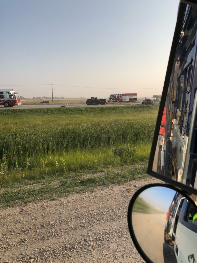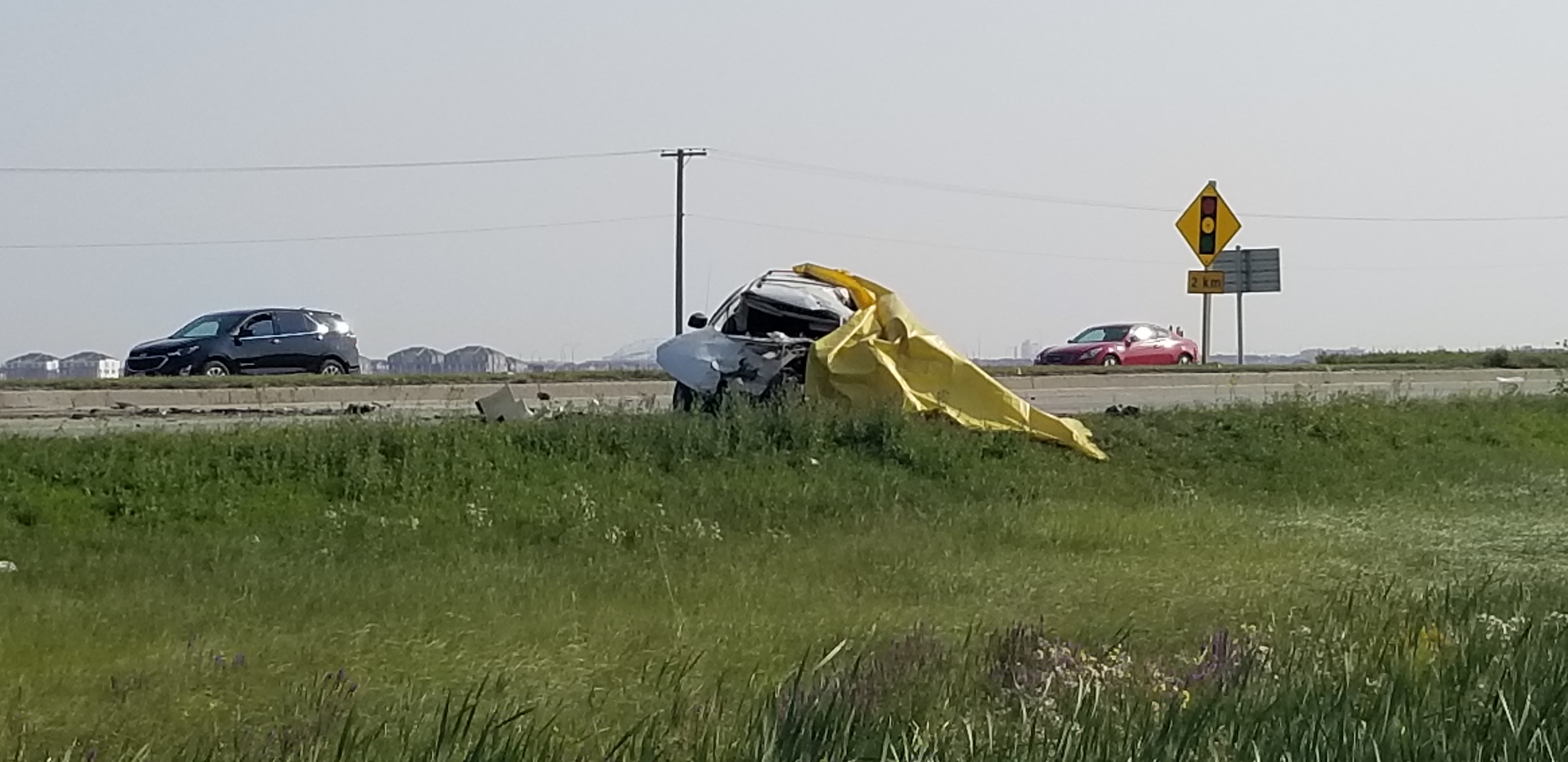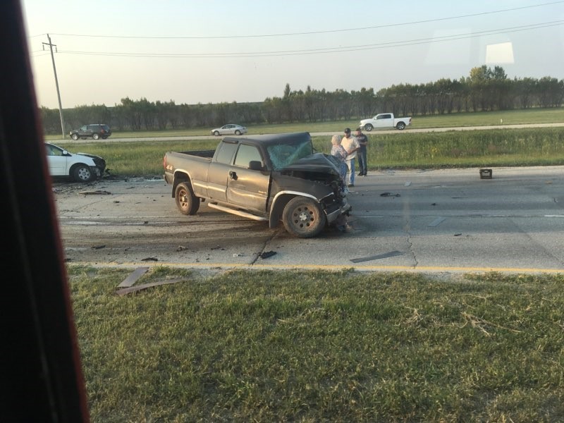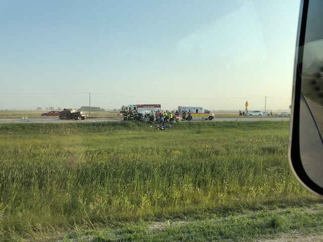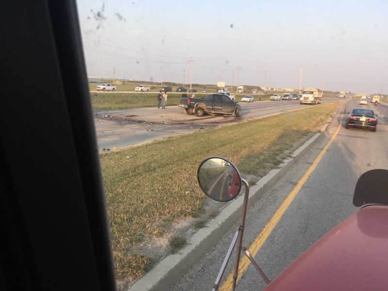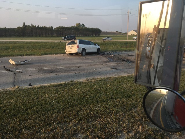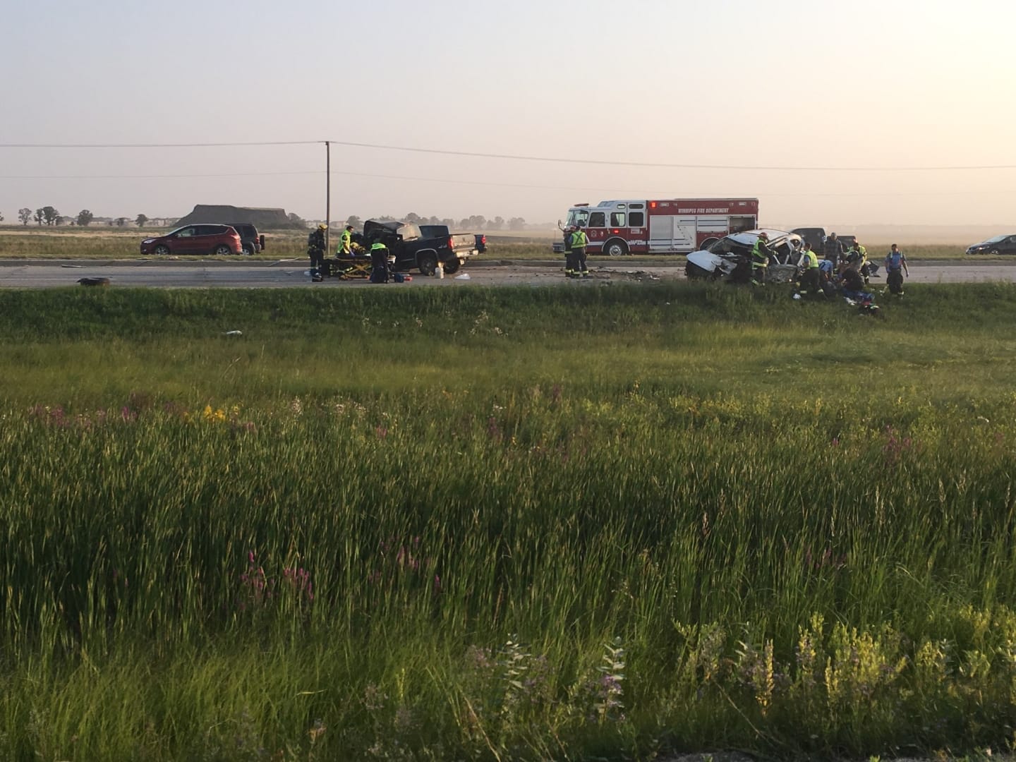 The crash appeared to have happened around 7:30 a.m. Witnesses told 680 CJOB the crash was “horrific” and was a head-on collision between a black pick-up truck and a white van.
