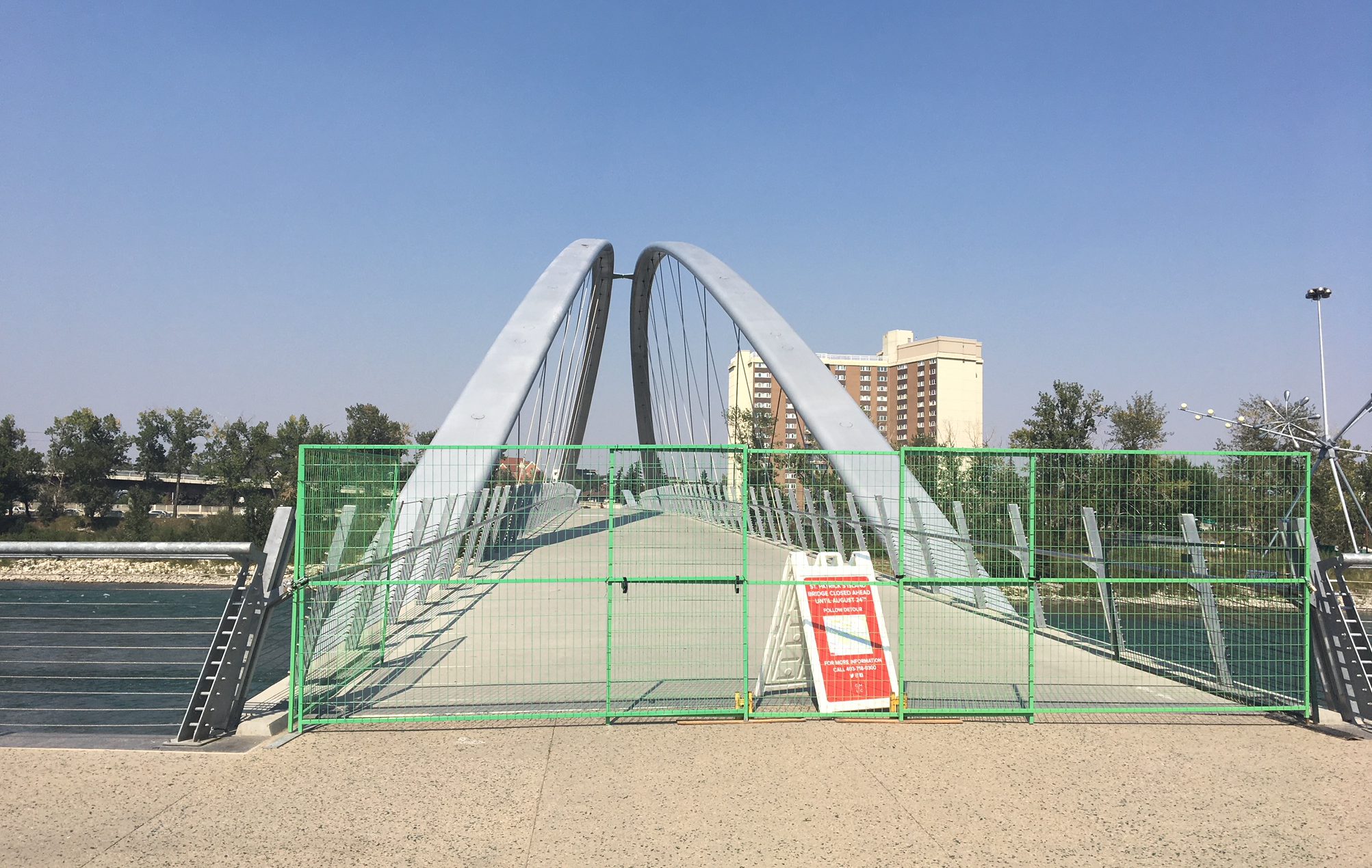 The Calgary Municipal Land Corporation (CMLC) closed the pedestrian bridge that spans the Bow River between the East Village and Bridgeland on Aug. 16 for public safety.