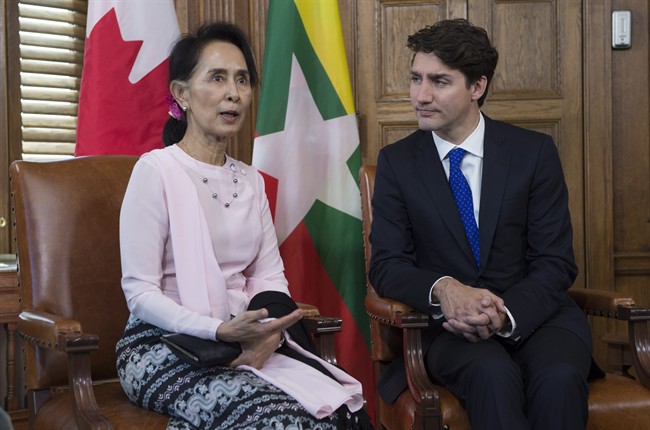 WATCH: Trudeau meets with Myanmar’s Aung San Suu Kyi on Rohingya crisis