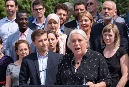 Québec Solidaire doesn’t have a traditional party structure with a single leader. Instead, it has two spokespeople: Manon Massé and Gabriel Nadeau-Dubois.