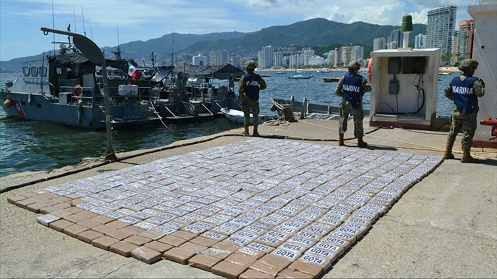 Mexican marines on Aug. 21 said they seized nearly one tonne of cocaine in 599 packages aboard a speed boat in Guerrero, Mexico, home to the resort city of Acapulco on the country’s Pacific coast.